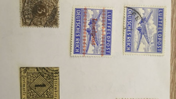Marken in der Mitte (Luftfeldpost mit rotem Aufdruck "Inselpost"): Hier handelt es sich um Feldpostmarken, die auf der Insel Kreta verwendet wurden. Der Katalogwert beträgt 350,- € bis 7.500,- € (je nach Variante - das ist was für Spezialisten), aber die Aufdrucke sind sehr häufig gefälscht. Ohne Attest eines Prüfers (dafür bezahlst Du ca. 30,- €) ist die Marke nicht verkäuflich. Hat die Marke ohne Stempel hinten noch Gummi drauf?