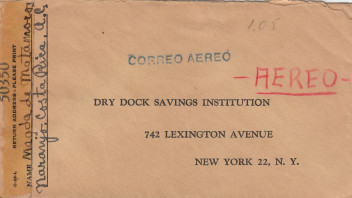 hier ein Beleg in die USA, aufgegeben in Naranjo, Costa Rica, am 26.10.1944, linksseitig geöffnet durch die amerikanische Zensur.