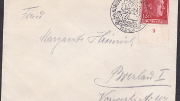 Hier so ähnlich, wie letztens bei Totalo-Flauti, ein Stempel, der als Auto-Werbung bezeichnet werden kann. Die Grundsteinlegung des VW-Werkes am 26.5.1938. Ich habe keine Ahnung, ob so ein Stempel etwas Besonderes ist und wie oft er abgeschlagen wurde. Ich fand ihn aber sehr dekorativ.