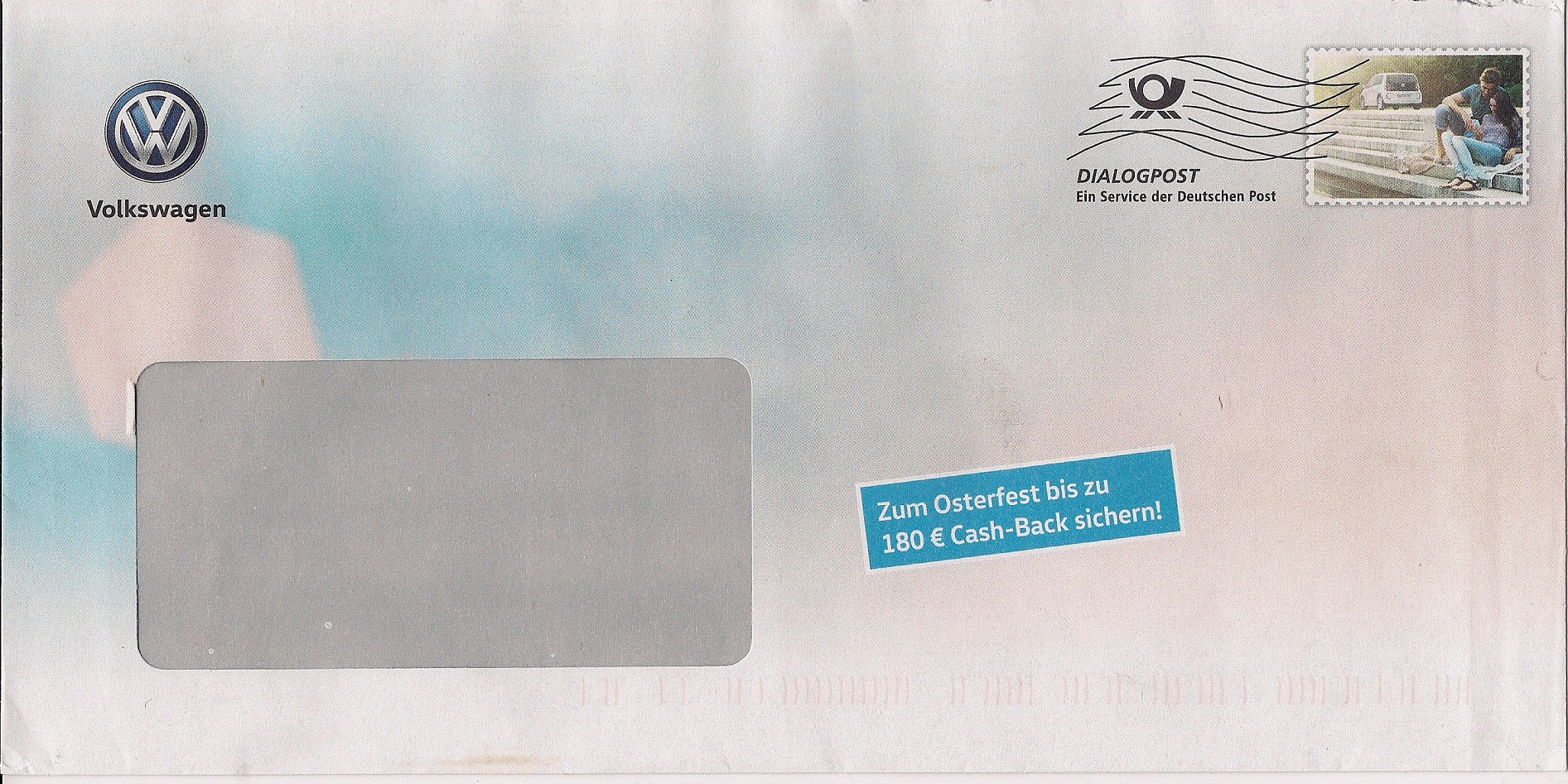 Rückseitig findet sich der einged ruckte Vermerk "Starten Sie gut gerüstet ins Frühjahr",auf der Vorderseite dann noch der Hinweis: "Zum Osterfest bis zu 180 € Cash-Back sichern!"