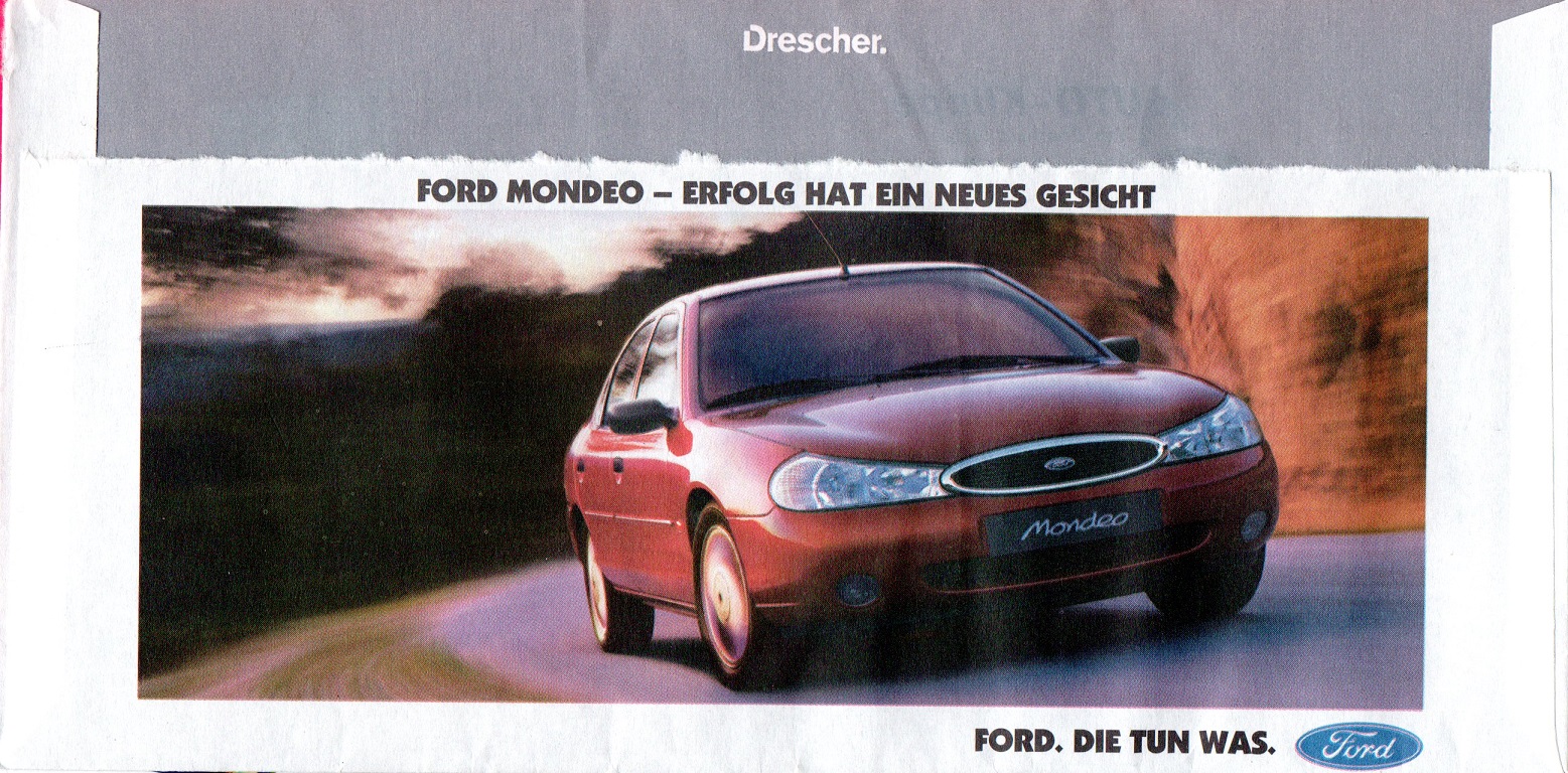 Zunächst ein Ford Mondeo. Beleg gestempelt am 09.11.98 in 63768 Hösbach 1.