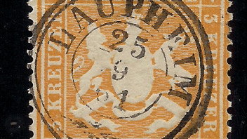 Ich zeige heute eine 3 Kreuzer Marke der Ausgabe 1860/61 auf dickem Papier mit dem Dreikreisstempel "Laupheim 25.9.61"