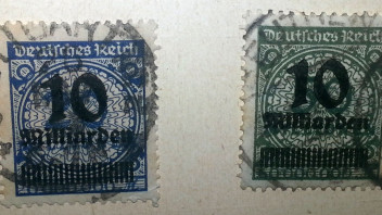 bei der rechten Marke ( 10 Milliarden auf 50 Millionen, Nr 336 A Walzendruck, ist leider die Farbe a, dunkelolivgrün) 3,50 MichelEuro.