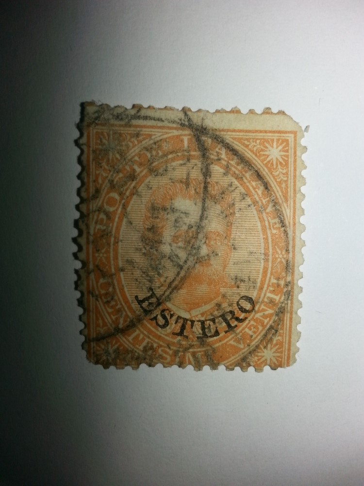 die Marke findet man hinter Italien unter: italienische Post im Ausland - Allgemeine Ausgaben, Michel-Nr. 14 von 1881/88 20 Centesimi braunorange. Der Aufdruck "Estero" bedeutet "fremd".