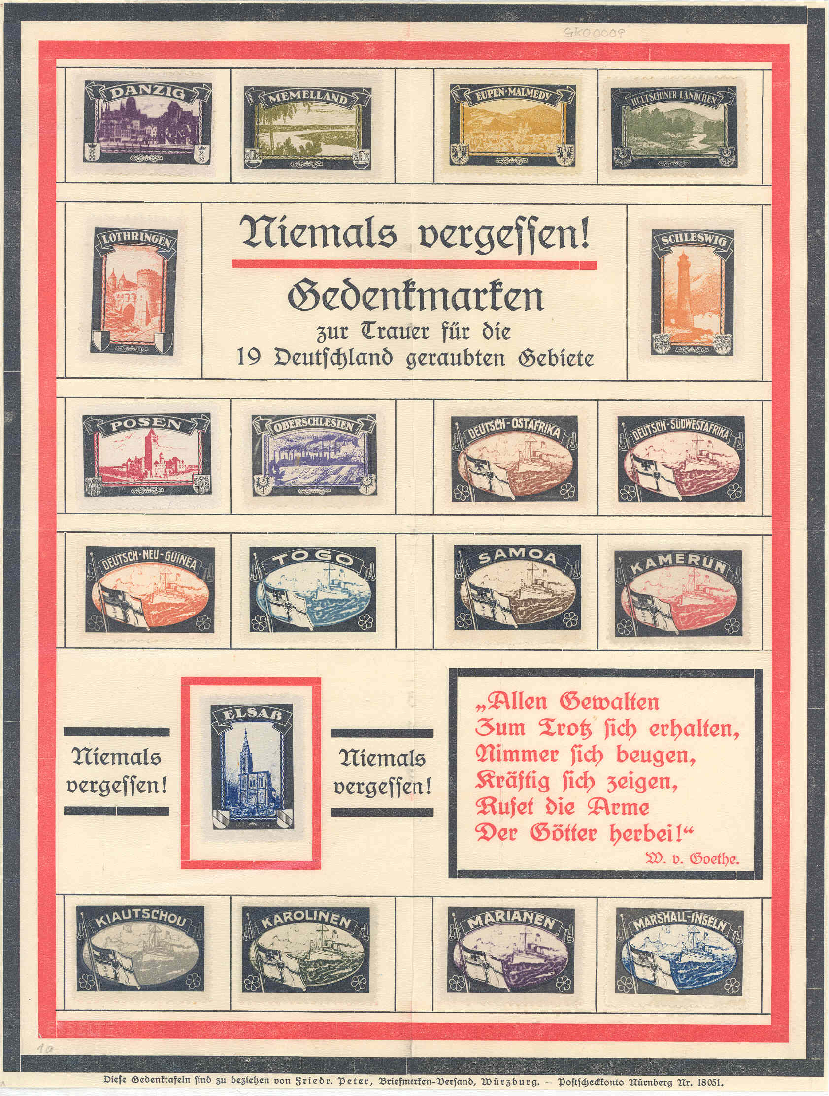 zeigt 19 privat verausgabte Vignetten auf einem Schmuckblatt (die