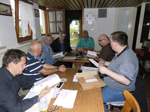 Bild 2: Blick in die Runde von der Gegenseite: Links die Plattenfehlerrunde, rechts davon am1937a, Omega-man und meine Wenigkeit am verdursten, mein Glas Apfelschorle war leer…