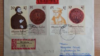 15. Juni 2016 um 20:07 #1 DDR Luther Geburtstag 4 Einzelmarken auf Eil-R-Brief ins Ausland, geprüft1,50 plus 0,70 Porto