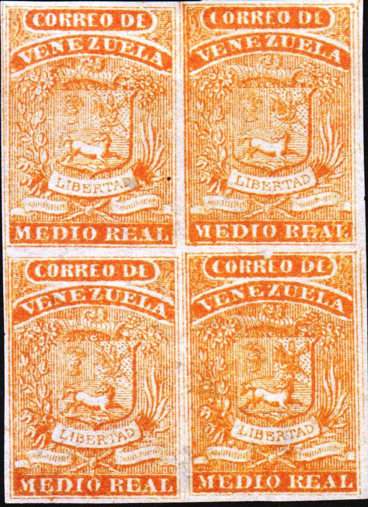 In meinem Uralt-Südamerika-Katalog 1973/74 fand ich die Marke unter der Michel-Nr. 1c, es gibt davon 2 Typen I und II, um welchen Typ es sich bei dem Paar handelt, weiß ich nicht. Allerdings steht im Michel noch eine Fußnote: "Nr. 1 auch in Rot bekannt (900,- DM)."