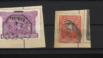 rechts: Bolivien, der Landesname Bolivia ist klar erkennbar. Wohl Mi. 68 aus dem Jahr 1901. Wertet in einwandfreier Erhaltung im Cent-Bereich.