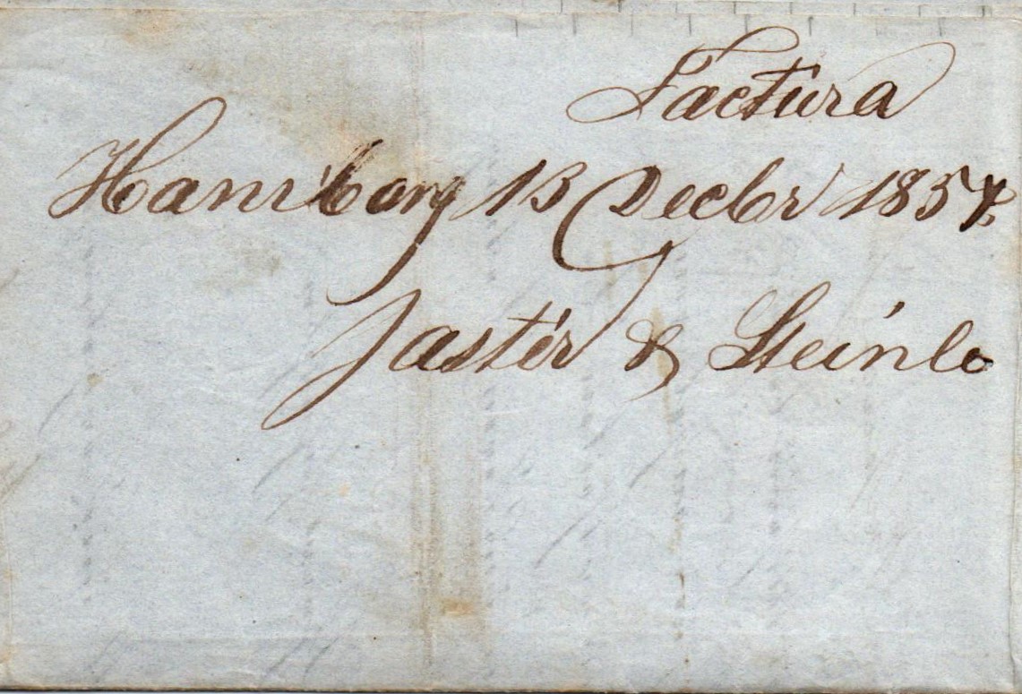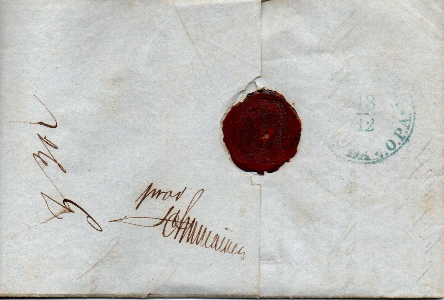 Das Porto gibt mir ein kleines Rätsel auf, es scheint mir nicht richtig berechnet Der Brief stammt aus der Zeit der 1. schleswig-holsteinischen Landespost und ist dort der 1. Portoperiode (1.1.1849 bis 31.12.1850) zuzuordnen. Laut einer mir als Scan vorliegenden Portotaxe dieser Portoperiode betrug das Porto für einen einfachen Brief von Reinbek nach Neumünster 2 Sch. Crt. (Entfernung 5 - 10 Meilen). Oben rechts hat der Postbeamte seine Portorechnung geschrieben. 2 1/8 Loth = 4 Sch. - Das ist nach meinen Informationen nicht korrekt denn 4 Schilling Crt. waren das Porto für Brief bis 2 Loth Gewicht. Bei 2 1/8 Loth wären 6 Schilling Crt. Porto fällig gewesen. Hinzu kommt 1 Schilling Crt für Wertsendungen bis 200 Mark Courant. Die vom Postbeamten errechneten 5 Schilling sind mit Blaustift in der Mitte unten angeschrieben.