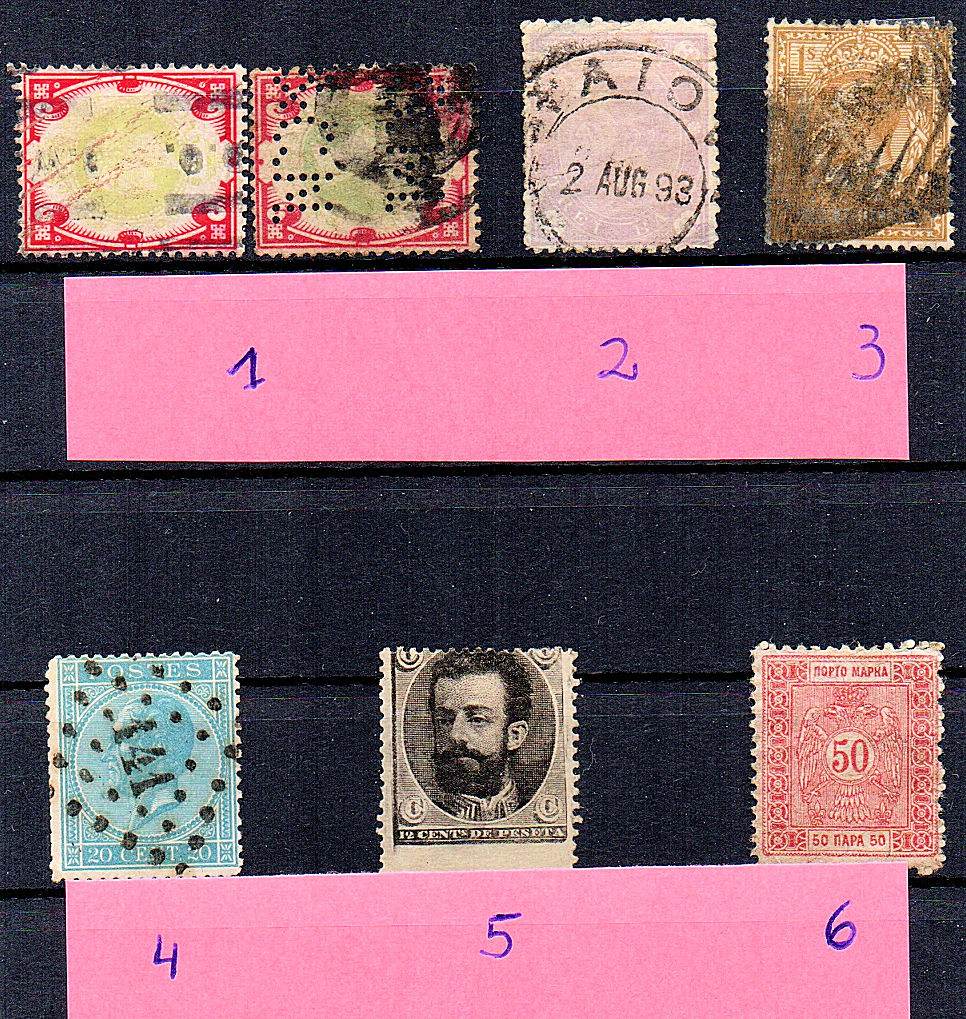 Nr. 5 ist ein damaliger Entwurf vom König Amadeo von Spanien von 1872/1873, der nicht gedruckt wurde. Es gibt ihn auch in geschnitten und in diversen Farbproben (im Galvez-Katalog die Nr. 835).