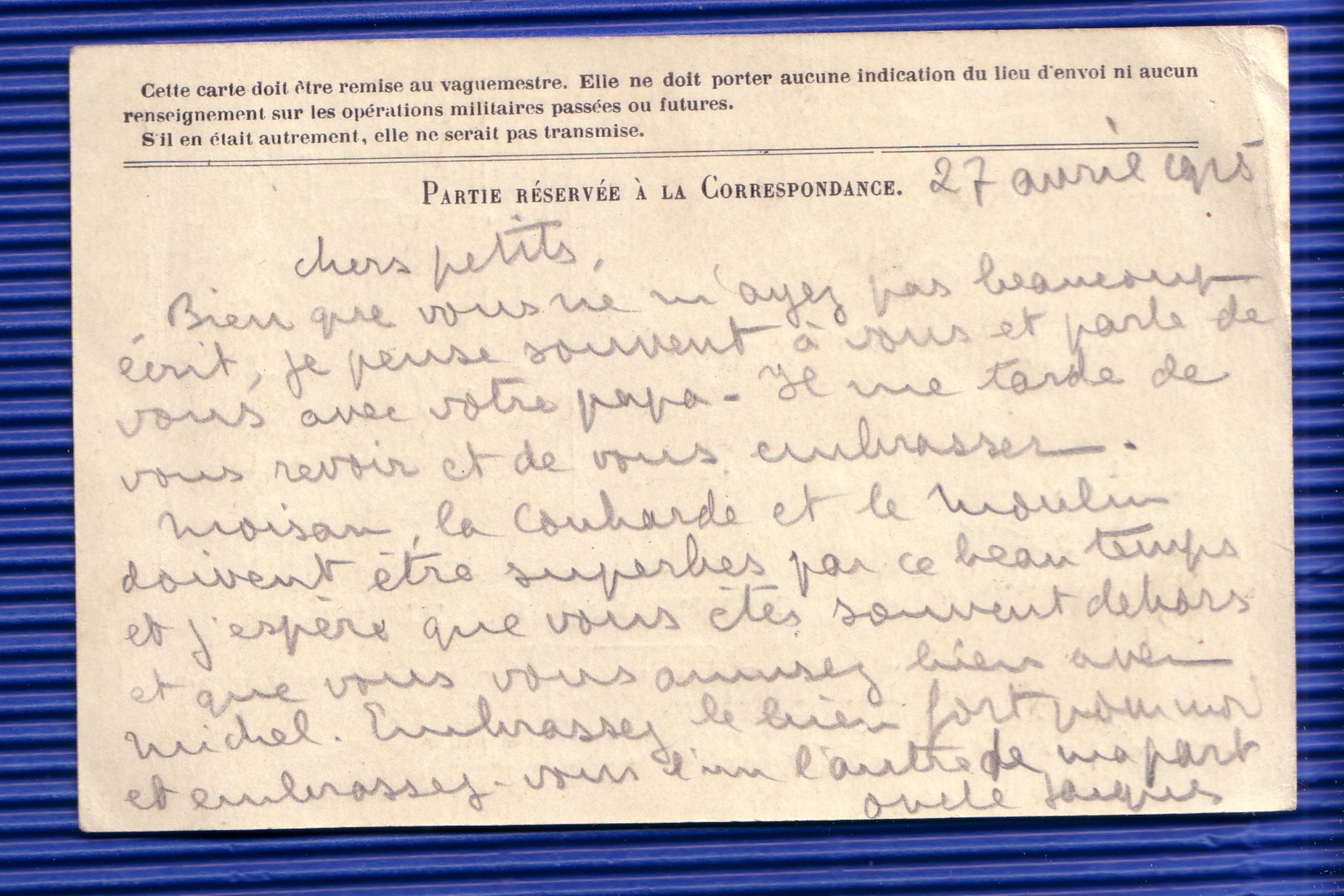 Hier habe ich eine Militär - Korrespondezkarte, gelaufen 1915, verschickt von einem " automobiliste" an seine Lieben daheim.