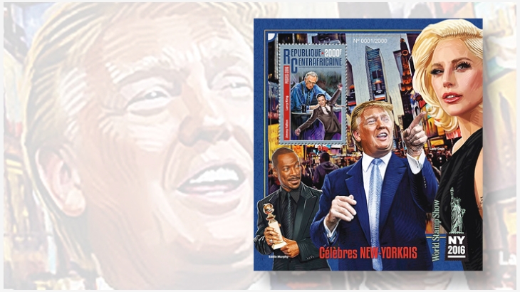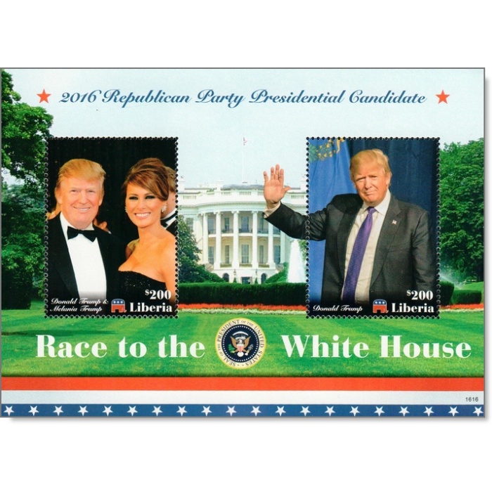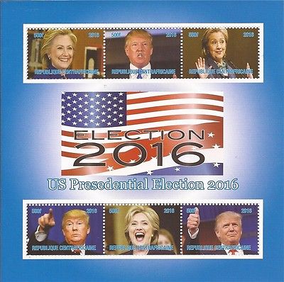 In vielen Ländern dürfen auch noch lebende Personen auf Briefmarken abgebildet werden im Gegensatz zu Deutschland. Auch den neuen gerade gewählten US-Präsidenten Donald Trump findet man schon auf Briefmarken, vorzugsweise auf Blöcken des afrikanischen "Raubstaates" Zentralafrikanische Republik sowie auf einigen Vignetten und Anti-Vignetten, auch auf einem menschlichen Rücken kann man eine Trump-Vignette sehen.