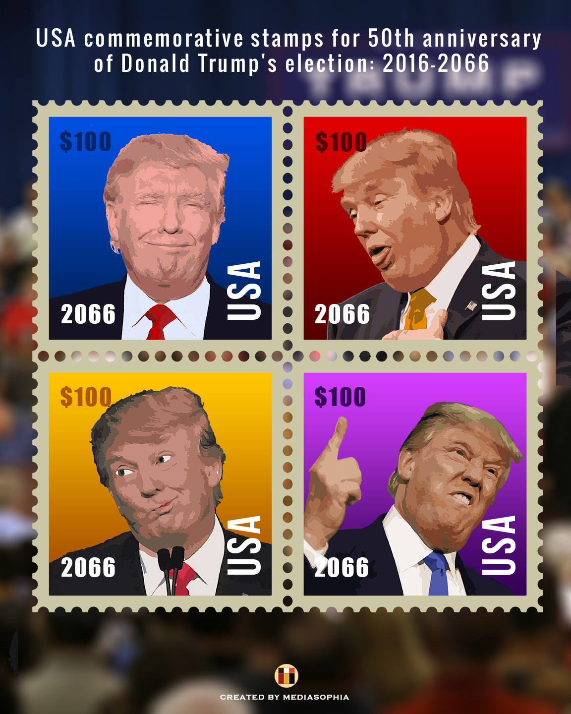 Hoffentlich wird der Briefmarkenmarkt nach dem Wahlsieg nicht weltweit mit Trump-Motiv-Marken überschwemmt! ![]()