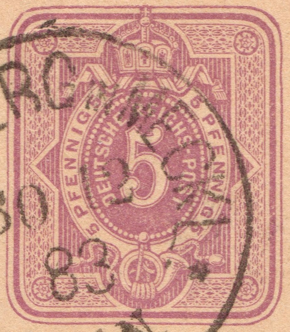 Heute zeige ich euch eine Postkarte im Fernverkehr vom 25. Januar 1881 aus Grevesmühlen nach Mölln. Das Porto dafür betrug 0,05 Mark und wurde durch Verwendung von einer Ganzsache zu 0,05 Mark (1 x Mi.-Nr. P 10 - Ausgabe von 1880) entrichtet. Dieses Postwertzeichen wurde mit dem Kreisstempel GREVESMÜHLEN entwertet.