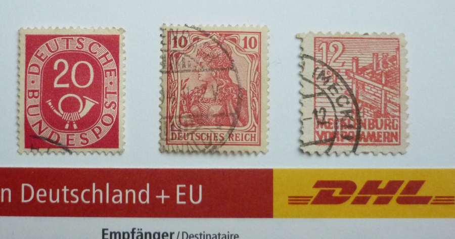 3) Und v.a.: kann mir jemand einen Tipp geben, um welche Farbvarianten es sich bei der Germania und bei der Mecklenburg-Marke handeln könnte? Es gibt da ja scheinbar erhebliche Wert-Unterschiede. Gleiches gilt wohl auch für den 2-Pfennig und die DDR-Marken?