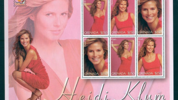 Das deutsche Model Heidi Klum brachte es auf einige Ausgaben, hauptsächlich Blöcke, die bringen das meiste Geld für die jeweilige Post oder Agentur, auch das umstrittene Gebiet Kirgisistan darf dabei nicht fehlen, obwohl man da Mühe hat, Heidi Klum unter den vielen anderen Promis überhaupt zu entdecken.