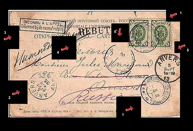 Der Knackpunkt ist der ursprüngliche russische Stempel. Der russische Ankunftstempel in der mitte ist eh zu schwach abgeschlagen.