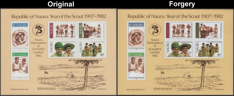 Sogar von dieser einsamen Insel, die seit Jahren keine Briefmarken mehr herausbringt, gibt es Fälschungen modernerer Art. Z. B. wurde ein Pfadfinder-Block aus dem Jahre 1982 gefälscht, nähere Einzelheiten dazu hier: