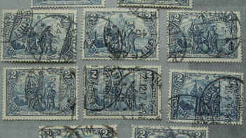 Stempel: durch das schlechte Papier, welches die Stempelfarbe aufsaugt meist verlaufene, unsaubere Stempel.