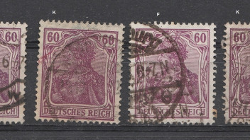 Auf der zweiten und dritten Marke sind die Abstempelungen erkennbar. Erstverwendung für die 95 A II soll 31.05.1916 gewesen sein, es könnten also Kriegsdrucke sein - ich bin mir überhaupt nicht sicher, weil die Markenbilder so deutlich erscheinen.