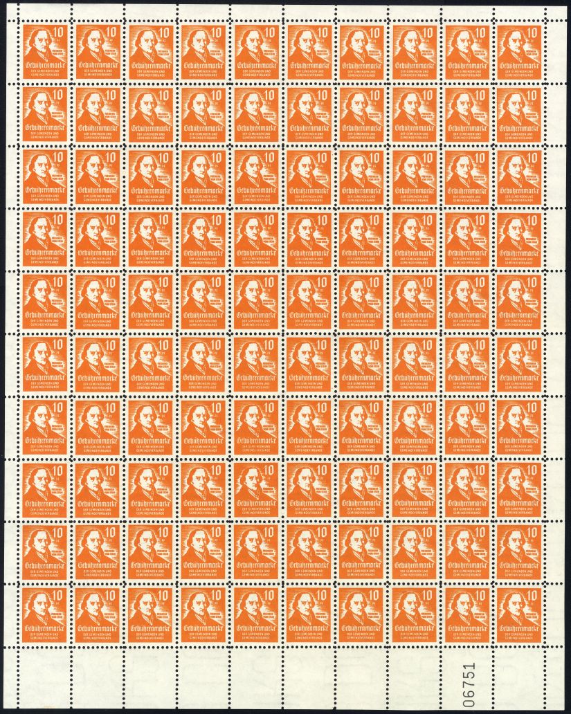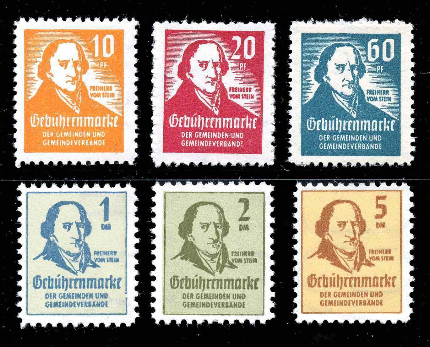 Diese Gebührenmarken mit dem Freiherrn von Stein wurden in den 50/60iger Jahren von diversen Gemeinden im nördlichen Bereich der BRD verwendet (Köln, Hannover usw. usf). 20 DM ist sicher ein eher seltner hoher Wert, aber da die Marken in vielen Gemeinden verwendet wurden und es sich um eine lose Mark, also keinen Beleg handelt dürfte der Wert auch nicht groß sein.