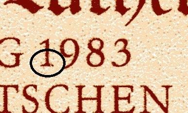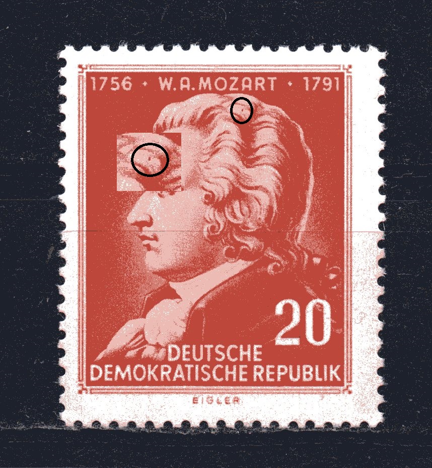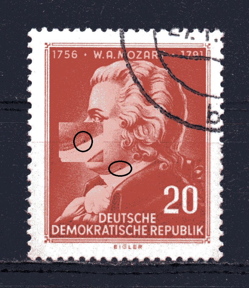 1361 schwarzer Fleck am Hals der linken Taube und roter Fleck unter dem R von REPUBLIK