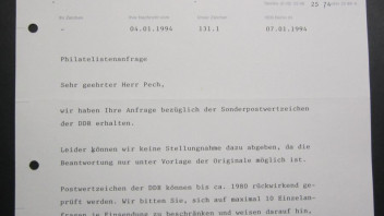 Wir haben Ihre Anfrage bzgl. der Sonderpostwertzeichen der DDR erhalten