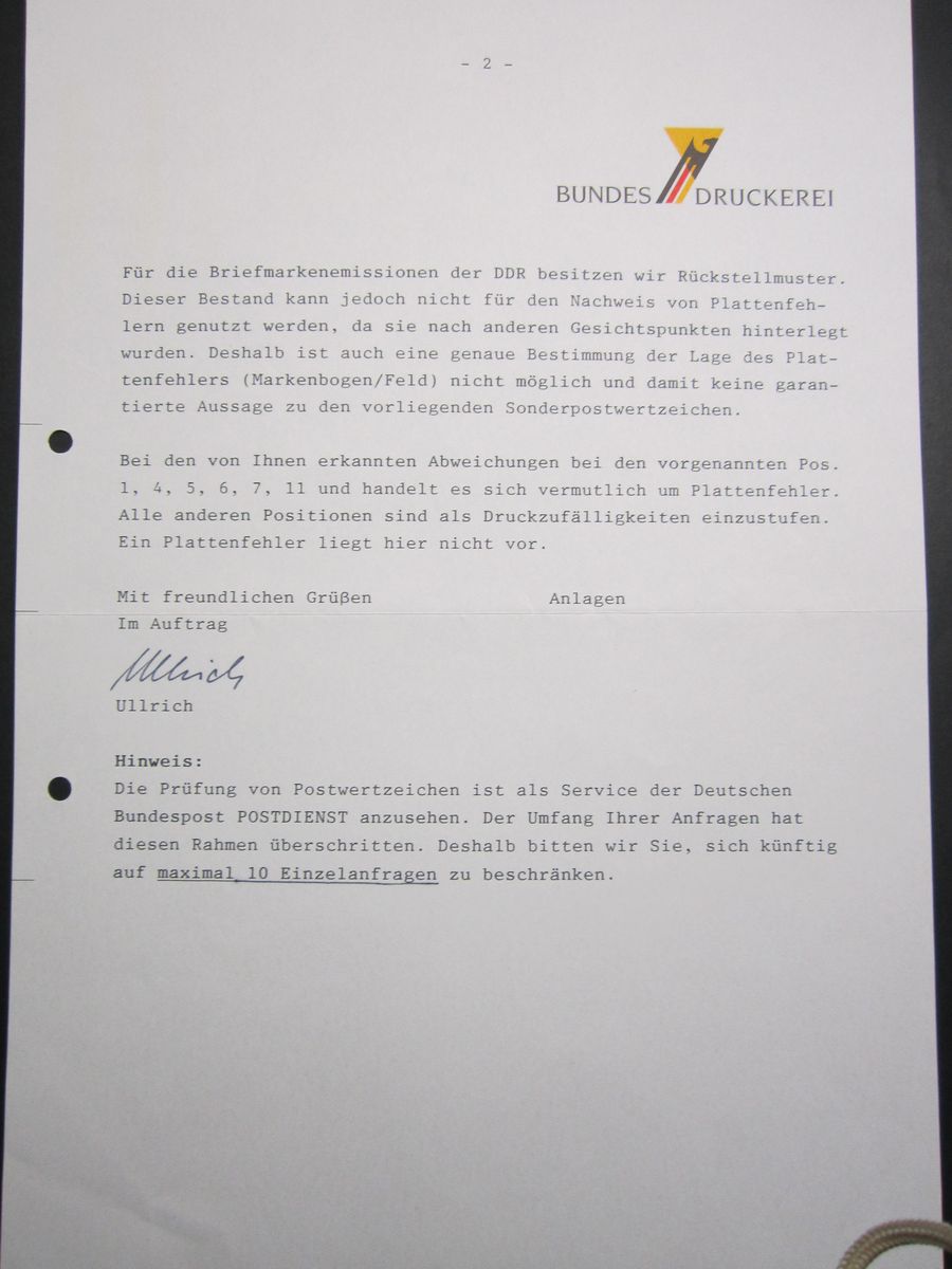 Bei den Bestätigungsschreiben der Bundesdruckerei würden mich die Fehler interessieren, welche als mögliche Plattenfehler festgestellt wurden. Vielleicht kannst du uns diese auch mal zeigen.
