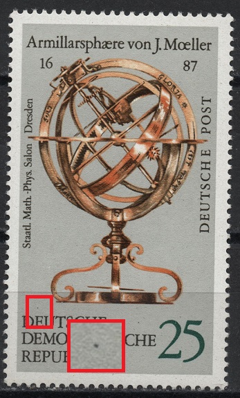 16. März 2022 um 12:24 #11.329 1797 dunkelbrauner Fleck über dem B von HIMMELSGLOBUS und dunkelbrauner Strich links unter dem D von DRESDEN