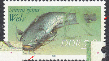 - fehlendes schwarzes schuppenraster (re. der rückenflosse und unter li. D von DDR)