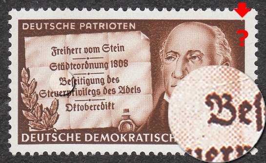 diesen fehler kann man an übereinstimmender stelle (jedoch in etwas unterschiedlicher ausprägung) auf zwei hier gezeigten o bogen wiederfinden: link