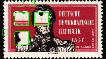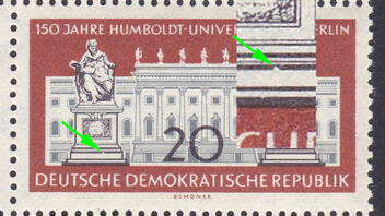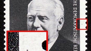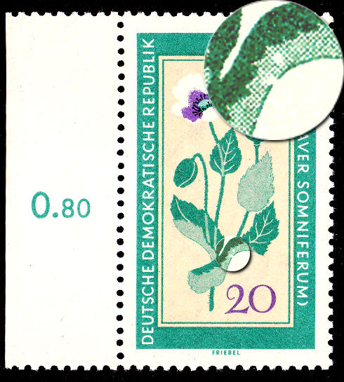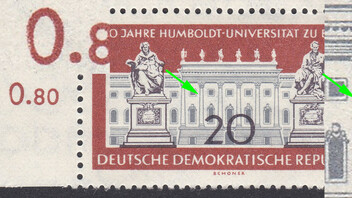 @B-reeze, Du hast ja richtigerweise die Mi.-Nr. mit 3077 angegeben. Das ist aus dem Kleinbogen 3. Die Anordnung des Sonderbogenstempels lässt auf das Feld F1 schließen. Meine vorherigen Schreiber haben es gut erklärt. Das Druckverfahren ist der Sticheltiefdruck. Es sind alle Ränder der Wertangabe durch den Strich durchbrochen. Ich würde ein Verwischen im Druckprozess vermuten.