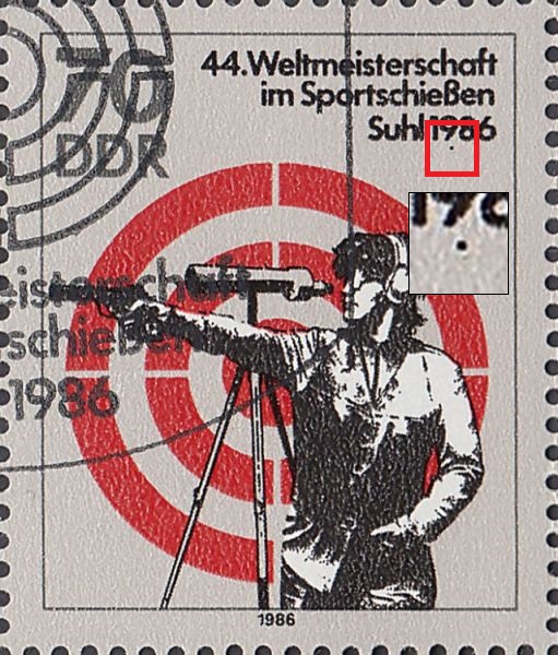 eine 3046 mit schwarzem Punkt unter der "9" von "1986"