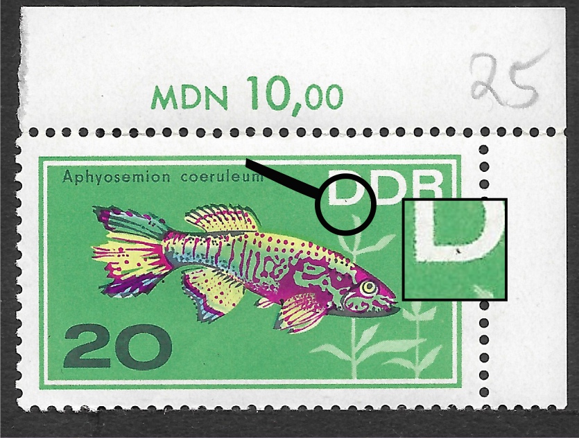 1224 a, Punkt im 1. D von DDR + schwarzer Punkt unter der Vorderflosse.