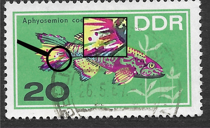 1224 a, Punkt im 1. D von DDR + schwarzer Punkt unter der Vorderflosse.