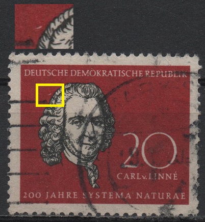 der Fleck scheint in Stempelfarbe zu sein, also Dublette.