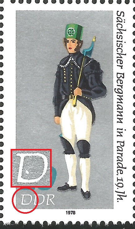a) Punkt rechts unten an Serife des R in DEMOKRATISCHE statt durchehend