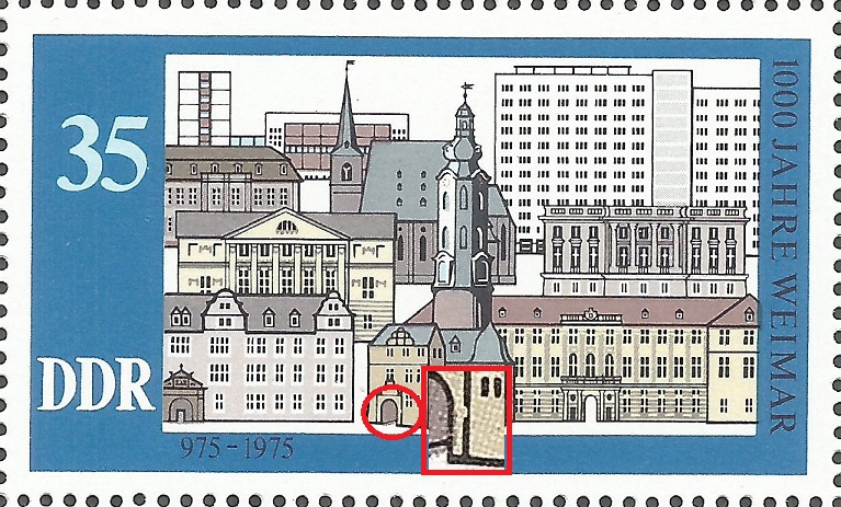 b) äußere Einfassungsline rechts mittig am Ornament unterbrochen