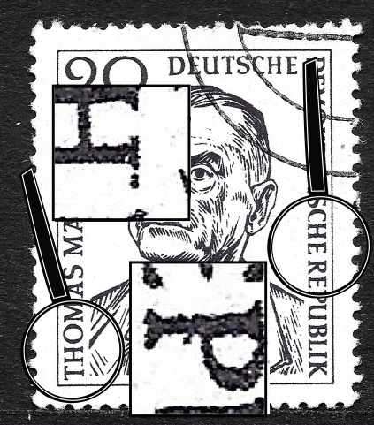 Strich am linken Fuß des H von Thomas + Punkt im P von Republik.