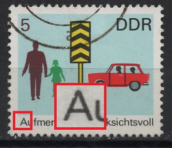 1444 Kerbe links oben am 1. A von AUFMERKSAM