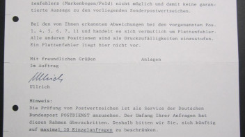 Bei den Bestätigungsschreiben der Bundesdruckerei würden mich die Fehler interessieren, welche als mögliche Plattenfehler festgestellt wurden. Vielleicht kannst du uns diese auch mal zeigen.