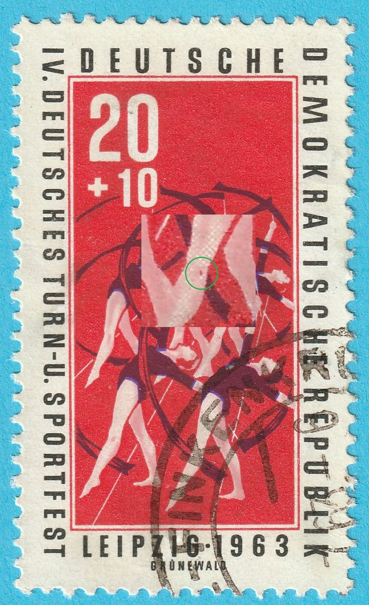 DDR 2069 mit braunem Fleck links unter der 20 im Rand: