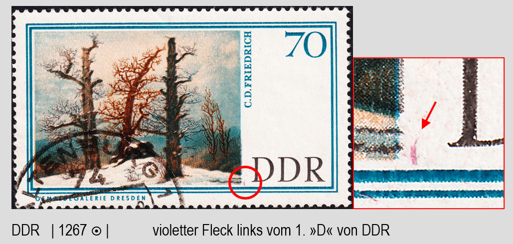 14. Juni 2022 um 06:58 #11.656 Guten Morgen und einen netten Dienstag DDR 1267 | gest | violetter Fleck links vom 1. »D« von DDR DDR 1267 | gest | zwei Punkte links oben am 1. »D« von DDR