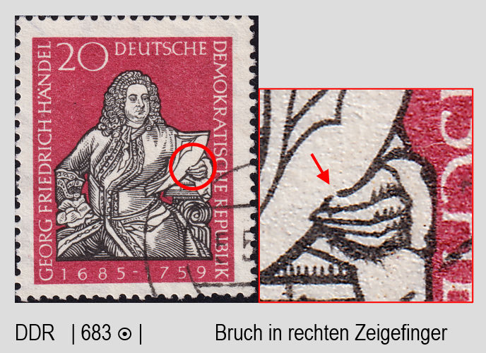 Waldmeister aus meiner Sicht ist der benannte Bruch bei der 678 eine mit gescannte Schuppe. Denn diese Struktur ist ein wenig transparent und überdeckt auch den Stempel. Schaue bitte mal nach.