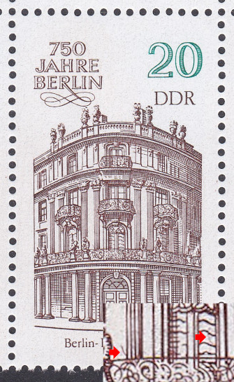achim35, die 3074 wurde nach dem Michel-Katalog Deutschland Spezial Band 2 im Sticheltiefdruck erstellt. In diesem Druckverfahren sind Abplatzungen Normalität. So wäre aus meiner Sicht auch beim Bogenfeld 15 das eingekerbte »r« von Friedrichstadtpalast einzustufen. Doch es findet sich auf dem Bogen in der Bogen-Wiki (Abbildung von dort) ein kleiner Buckel am langen Abstrich des »R« von BERLIN. Ich sehe das auf Deine Abbildung nicht. Der Strich im Fensterbogen ist dagegen vorhanden. Kannst Du bei Dir bitte noch mal schauen?