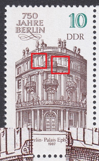 achim35, die 3074 wurde nach dem Michel-Katalog Deutschland Spezial Band 2 im Sticheltiefdruck erstellt. In diesem Druckverfahren sind Abplatzungen Normalität. So wäre aus meiner Sicht auch beim Bogenfeld 15 das eingekerbte »r« von Friedrichstadtpalast einzustufen. Doch es findet sich auf dem Bogen in der Bogen-Wiki (Abbildung von dort) ein kleiner Buckel am langen Abstrich des »R« von BERLIN. Ich sehe das auf Deine Abbildung nicht. Der Strich im Fensterbogen ist dagegen vorhanden. Kannst Du bei Dir bitte noch mal schauen?