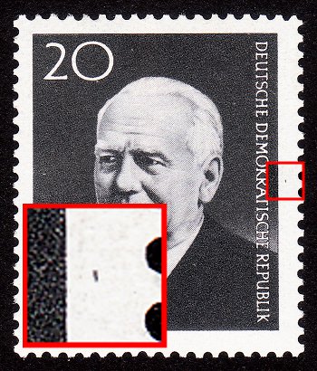 @B-reeze, Du hast ja richtigerweise die Mi.-Nr. mit 3077 angegeben. Das ist aus dem Kleinbogen 3. Die Anordnung des Sonderbogenstempels lässt auf das Feld F1 schließen. Meine vorherigen Schreiber haben es gut erklärt. Das Druckverfahren ist der Sticheltiefdruck. Es sind alle Ränder der Wertangabe durch den Strich durchbrochen. Ich würde ein Verwischen im Druckprozess vermuten.