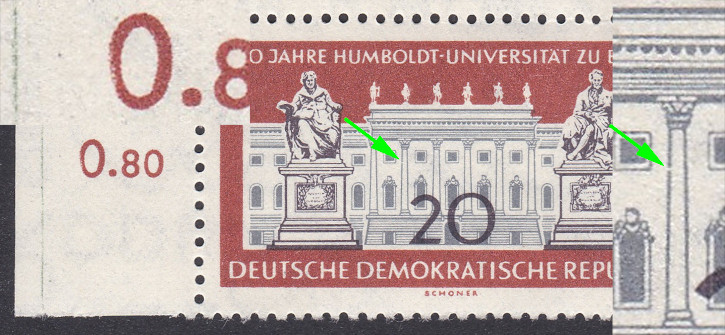 @B-reeze, Du hast ja richtigerweise die Mi.-Nr. mit 3077 angegeben. Das ist aus dem Kleinbogen 3. Die Anordnung des Sonderbogenstempels lässt auf das Feld F1 schließen. Meine vorherigen Schreiber haben es gut erklärt. Das Druckverfahren ist der Sticheltiefdruck. Es sind alle Ränder der Wertangabe durch den Strich durchbrochen. Ich würde ein Verwischen im Druckprozess vermuten.