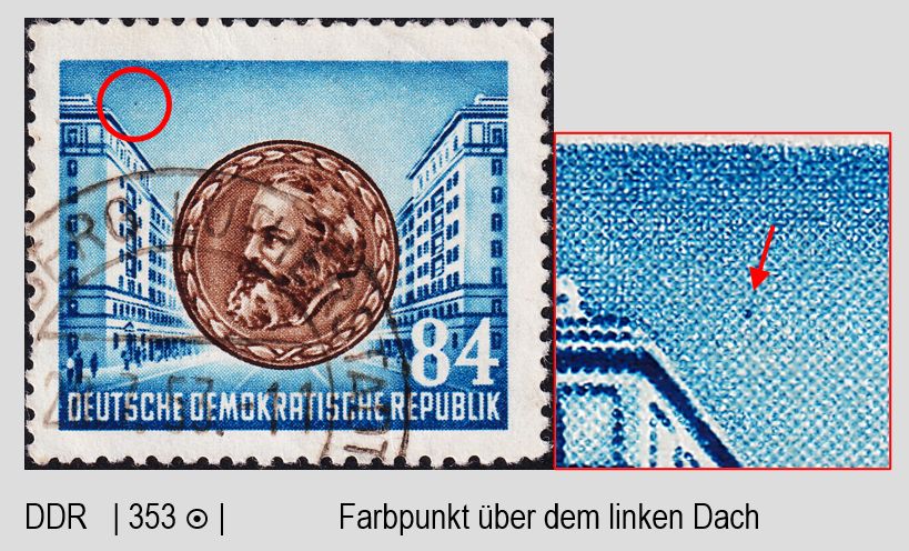 DDR 353 | gest. | Farbpunkt über dem linken Dach